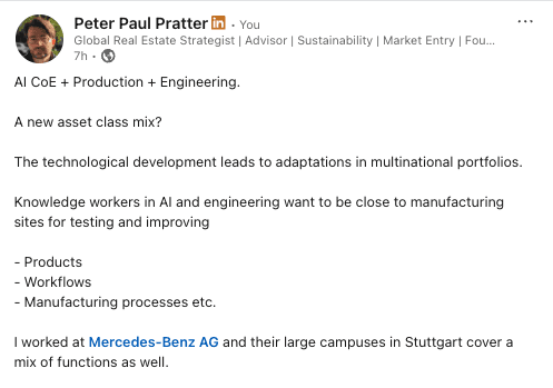 Knowledge workers in AI and engineering want to be close to manufacturing sites for testing and improving